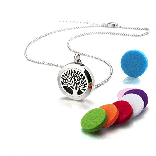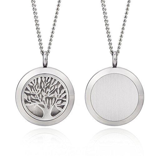 BESTTERN Stainless Steel Essential Oils Diffuser Locket 25mm/Carving Aromatherapy Necklace With 8Pads