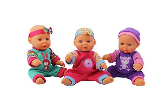 Set Includes: 3 sleepover babies - Each doll is approx. 8" - All babies are dressed in PJ's & in different head pieces