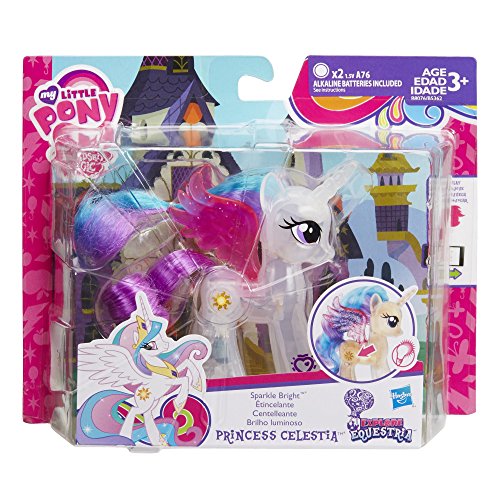 The magic of Princess Celestia shines throughout Equestria! Press her cutie mark to make this Princess Twilight Sparkle pony figure light up! Scan the pony figure’s code to unlock more fun in the My Little Pony Celebration app, and also look for other My Little Pony figures to inspire more fun friendship adventures! (Each figure sold separately. Subject to availability.) My Little Pony and all related characters are trademarks of Hasbro.Feature