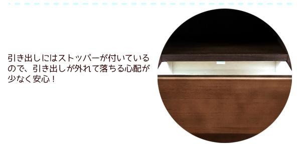 | 素材・材質 | 【ホワイト】 前面:繊維板(MDF) 本体:プリント紙化粧繊維板 塗装:ウレタン樹脂(エナメル仕上げ) 【ダークブラウン】 前面:天然杢(パイン材) 本体:プリント紙化粧繊維板 塗装:ウレタン樹脂 |
