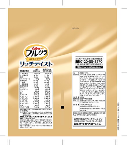 원재료:O《즈》맥,소맥분,설탕,코코넛,식물성 기름,미분,건조 과실(레이의《》,사과,딸기)고, 말《도데키스토린》,콘 플라워,호밀분,아몬드,벌꿀 젤리,수용성 음식물 섬유,탈지분유,두유(대두를 포함한다)고, 호박의 종,벌꿀,식염,현미분/글리세린,가공 전분,구연산철Na,신맛료,겔화 제(백 친)고, 산화 방지제(비타민E,rosemary 추출물)고, 나이아신,판토텐산Ca,유화 제,비타민A,비타민B6,비타민B1,엽산,비타민D,비타민B12