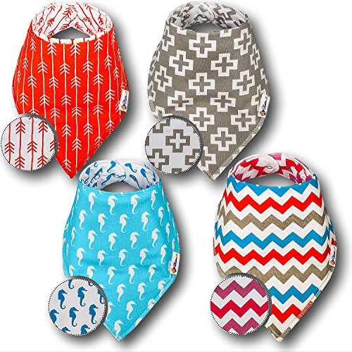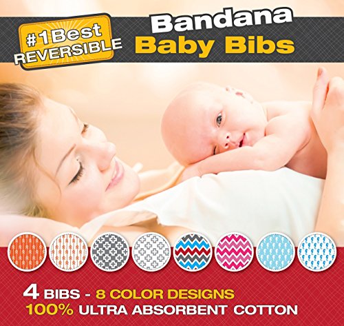 - Title : Set of 4 Premium Quality Baby Bandana Drool Bibs with 8 Unisex Designs: Reversible Drooling Scarf Set - 100% Organic Ultra Absorbent Cotton Front and Back - Cute Shower Gift for Boys and Girls