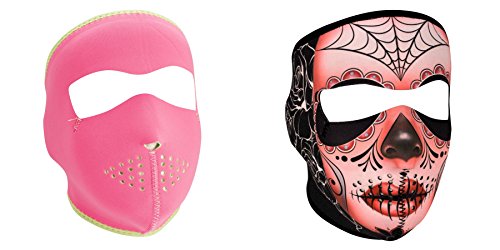 -. Title : Bundle (2 Items): 1 ZanHeadgear 'Solid Pink ' Full Face Neoprene Face Masks -AND- 1 Zan 'Sugar Skull' Full Face Neoprene Face Masks, Ski Mask