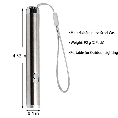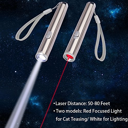 Studio : Bascolor Publisher : Bascolor Binding : Misc. Product Description Welcome Bascolor cat toys LED light teaser weight: 92g(2 pack) length:4.6in diameter:0.6in material: Stainless steel, features two models: Red focused light for cat teasing/ white for lighting required battery model: 1 AA battery. ( Not included in package) one button?switch?with two?variation: First for red focused light, second for white lighting. Laser distance: 50-80 feet warning: Don't aim at cat's eyes . 0