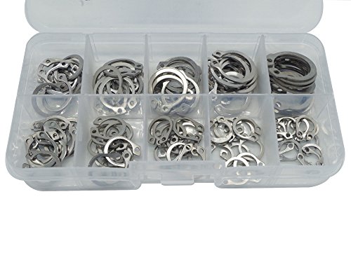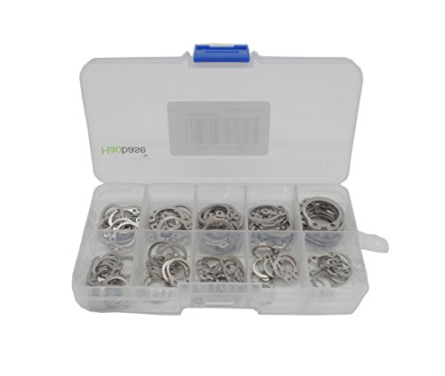Haobase 100Pcs 10 Size 304 Stainless Steel External Circlip Retaining Ring Assortment Kit 8-18mm With box