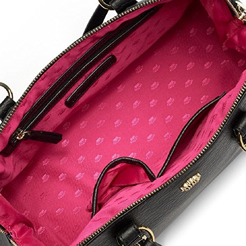 This Juicy Couture shopper features signature logo graphics with sleek hardware. HANDBAG FEATURES Gold-tone hardware ''Juicy Couture'' graphics HANDBAG DETAILS 9.5''H x 14''W x 6.5''D Drop down handles length: 5.5'' Approx. drop down strap length: 21'' Handles & adjustable crossbody strap Zipper closure Exterior: slip pocket Interior: zip pocket & 2 slip pockets Faux leatherFeature