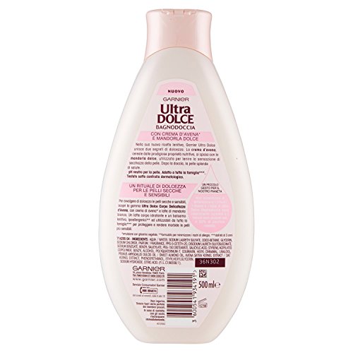Garnier: "Ultra Dolce" ("Super Sweet") Ultra Gentle Bath Shower with Sweet Almond & Oatmeal 500ml Bottle * [ Italian Import ]