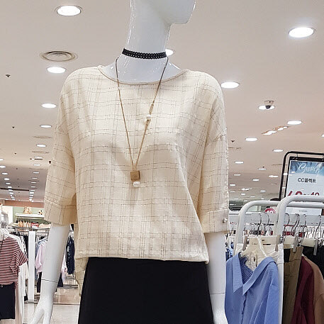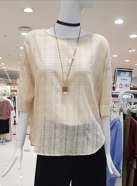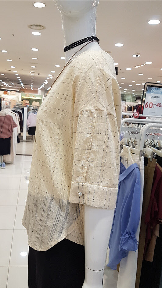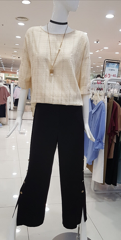 CC collect 은은베이지에 잔잔체크가 세련하네요루즈한듯 떨어지는 핏이지만 ㅎㅎ넓지 않은 밑통에 부해보이지 않네요시원소재에 날씬핏이라 굿~하구요^^비침 없어 착용 좋으셔용~