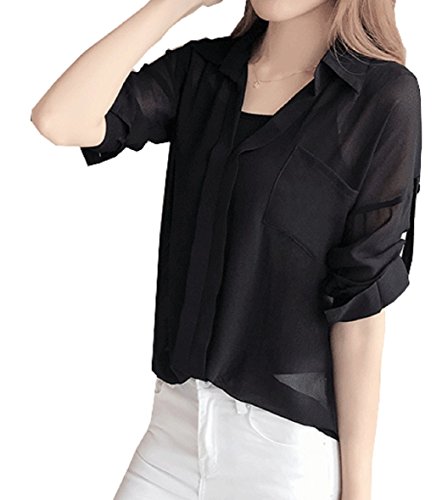 -. Feature : ロング丈シースルーシャツトップスです。 / 袖にボタンが付いていて長さが調節できます。 / ボトムはデニムでもスカートでも合わせやすくカジュアルにオフィスファッションにも着こなせます / ゆったりとしたデザインでメリハリのあるスタイルに仕上がります。 / サイズCM:S着丈66/胸囲96/袖丈64 M着丈67/胸囲100/袖丈65 L着丈68/胸囲104/袖丈66 XL着丈69/胸囲108/袖丈67 XXL 着丈70/胸囲112/袖丈68