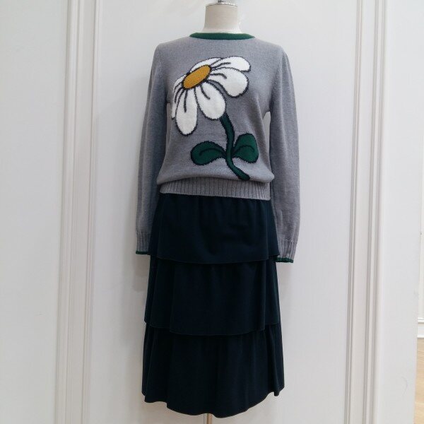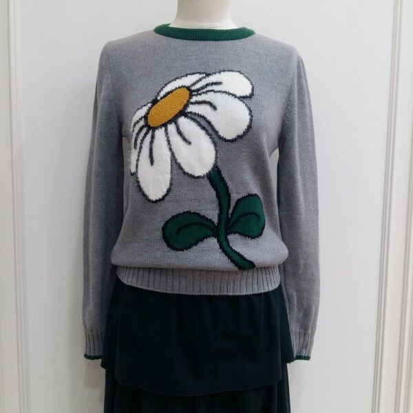 앞면의 꽃 자카드 포인트인 기본형 풀오버