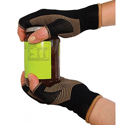 Studio : Remedy Health Publisher : Remedy Health Binding : Health and Beauty Product Description These Copper Gloves help relieve arthritis pain, weakness and fatigue in your wrists and hands so you can enjoy your regular activities again. With heat-conductive copper woven right in, they help warm joints to improve mobility and provide soothing comfort and support for arthritic hands. Wear them day or night to help reduce pain and inflammation. Machine washable bamboo charcoal fiber/copper/elastane. One pair. (INCLUDES FREE 10PC ARTHRITIS FINGER SLEEVES) 0