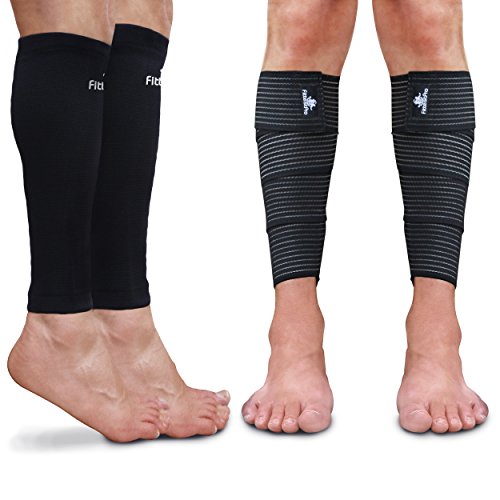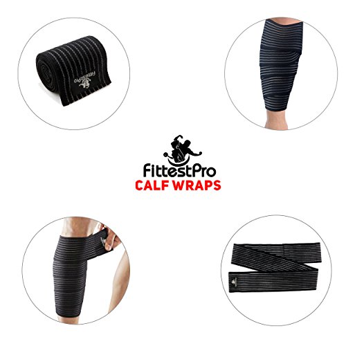 - ✅ EXCLUSIVE HIGH QUALITY ELASTIC CALF WRAP PAIR - Designed with criss-cross type elastic straps with velcro closure. Helps reduce swelling and relieve pain due to bursitis. Breathable fabric provides soft tissue support without heat retention. Constructed of dual tension elastic strapping "space-age" material. "Starter loop" allows the wrap to be pre-positioned for controlled compression. Ideal for extended use. Great for strains or contusions to the quadriceps, hamstring, or groin muscles