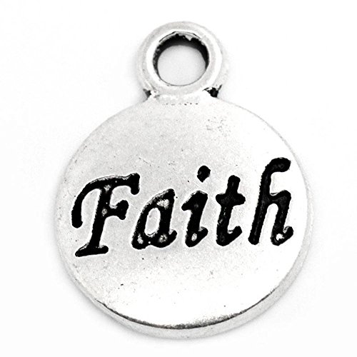 50 Antique Silver Circle Round Faith Word Charm with Ring 15 x 12mm
