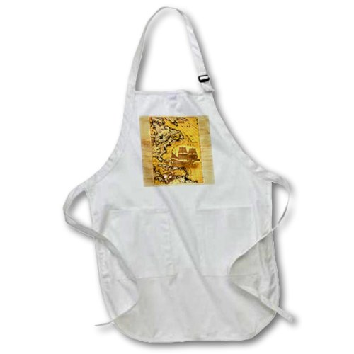 3dRose apr_20905_4 Treasure Map Full Length Apron with Pockets, 22 by 30-Inch, Black