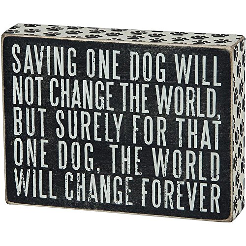 Saving One Dog Black Wooden Vintage Style Paw Print Box Sign