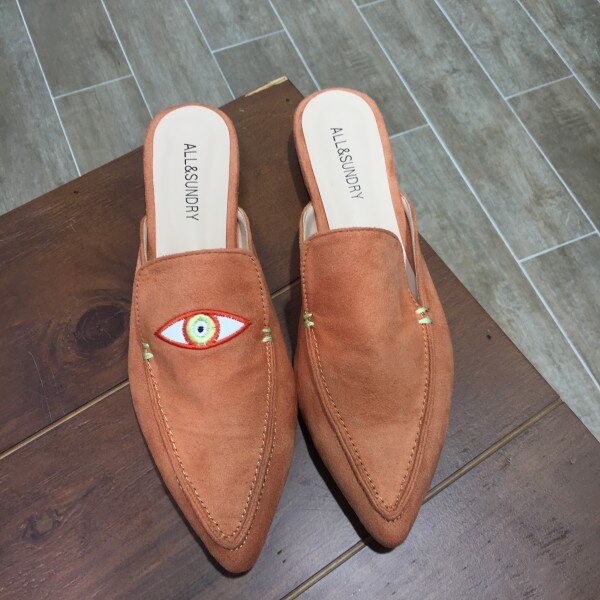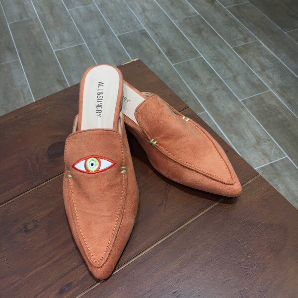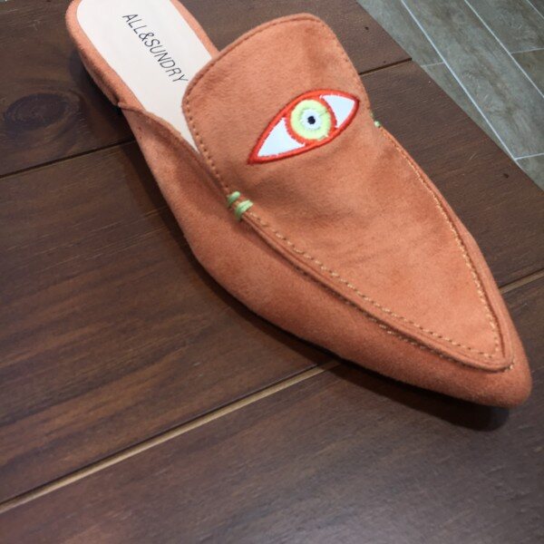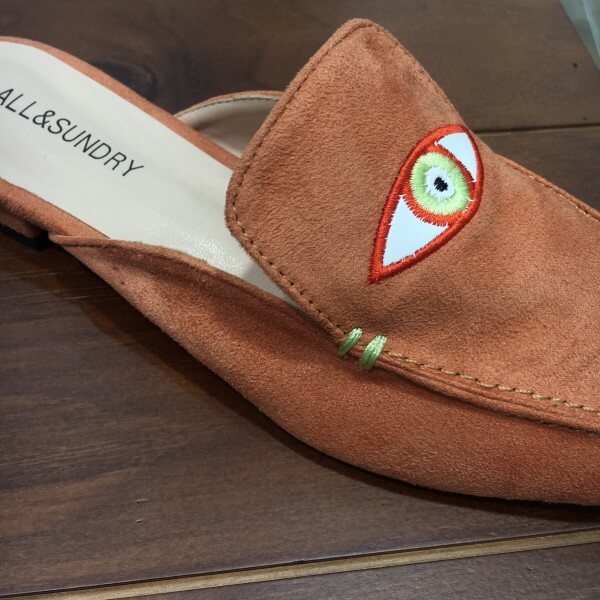 눈 모양 자수가 디테일 포인트로 들어가 유니트 하면서도 센스있는 분위기를 연출해주는 블로퍼입니다! 요제품 탄탄한 마감 처리와 발등의 포인트, 굽에 얇은 금장디테일로 퀄리티를 한 층 높여준 슈즈인데요~ 스웨이드 같은 벨벳느낌의 블로퍼라 너무 가벼운 느낌이 아니구요. 무게감 있는 아이입니다. 바닥에는 쿠셔닝이 살짝 들어가 있어 오랜 착화에도 편안한 제품이며 뽀족한 앞코가 시크한 분위기를 연출해 줍니다. 발목이 드러나는 팬츠나 원피스와 같이 착용해 주시면 이쁜 코디 완성이에요. 귀여우면서도 느낌있는 블로퍼 굽은 2.5cm이며 66(240), 77(245) 두 사이즈만 진행합니다.