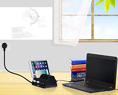 TIDY UP YOUR HOUSE AND TABLE: Put your multiple devices on the docking station organizer to minimize clutter. The slot fits tablet with thickness (include cover) less than 0.75 inch. Recommend to buy shorter cables for perfect clutter free experience.