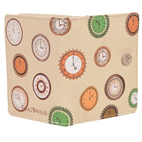 Shagwear Women's Small Zipper Wallet Vintage Clocks Beige