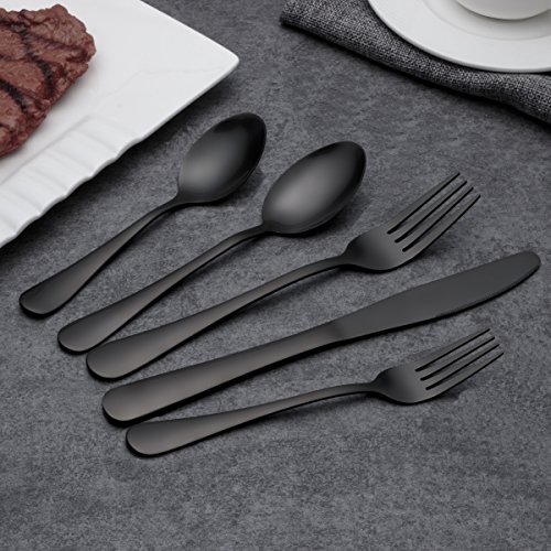 Tital:Berglander Flatware Set Black Gold, 20 Piece Black Flatware, 20 Piece Black Titanium Flatware, 20 Piece Black Gold Plated Stainless Steel Silverware Set Cutlery Sets, Service for 4 1.Our product is made of 18/0 Stainless steel. Strong Anti Rust . 2.Adopting high quality food safety material,poisonless and tasteless 3.High quality elegant design 4.Durable strong construction that will last for years. 5.Well-balanced to fit securely in your hand. 6.Heat-resistant, won't bend and dishwasher safe. 7.Designed to fit well in your hand. 8.High Quality Luxury Mirror polished