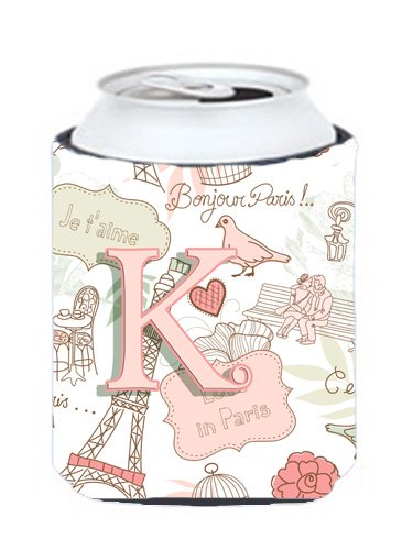 Letter K Love in Paris Pink Can or Bottle Hugger CJ2002-KCC