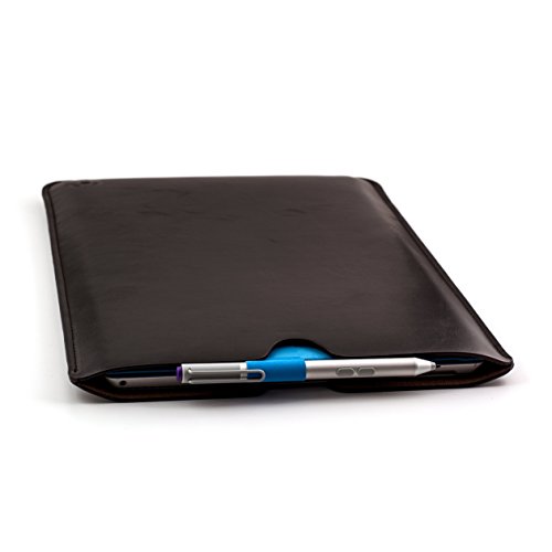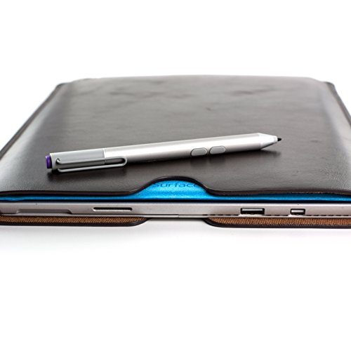 What is it? This is one of the simplest and most professional looking cases for your Microsoft Surface PRO Tablet Computer. The deep dark brown gives an elegant look and feel while the simplicity of this case is unrivaled. There's nothing super-fancy about it - it's just a basic synthetic leather sleeve with a premium look and feel. The synthetic leather has just enough cushion to protect your device but still remains a super thin solution for protecting your device while you throw it into your briefcase, backpack, or in with your stack of books.How it works: The tablet is held into the case simply by friction - so no need to worry about breaking any buckles, snaps, or clasps.