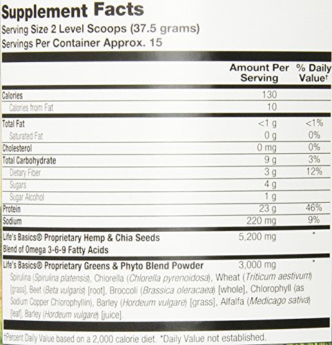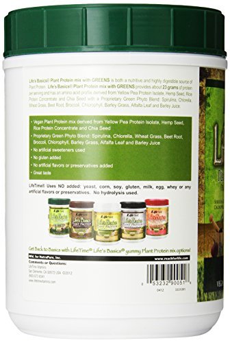 -. Feature : Lifetime Life's Basics Plant Protein with Greens, 19.84-Ounces Tub (Pack of 3)
