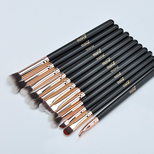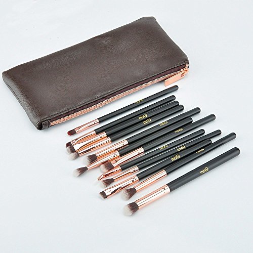 MSQ Eyeshadow Brushes 12pcs Rose Gold Eye Make Up Brush Set with Bag (PU Leather Pouch) Soft Natural Hairs for Eyeshadow, Eyebrow, Eyeliner,...