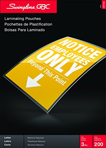 Swingline GBC Economy Thermal Laminating Pouches, Letter Size, 3 Mil, 200 Pack (3747143)