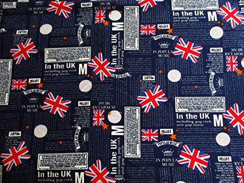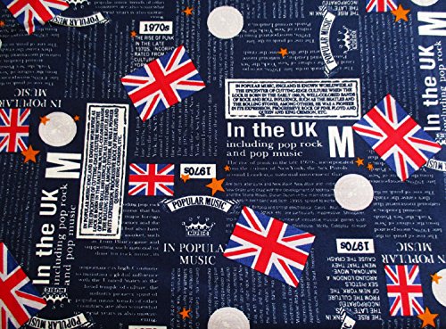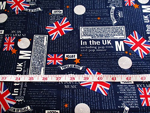 United Kingdom, Union Jack, London, England Classic Mark, Red Heart Card, Clover Card, Crown Sign on Dark Blue 36 by 36-Inch Wide (1 Yard) (CT382)