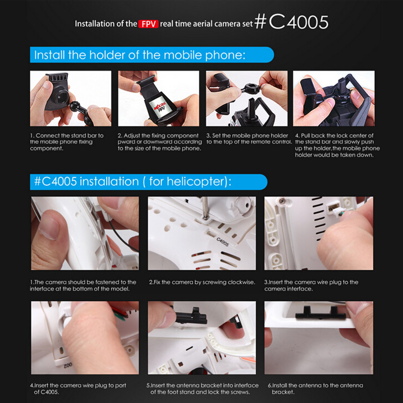 These high quality aerial camera components are just design for RC super fans. It suits for MJX T64 T10 T55 T57 RC helicopte and X400 X500 X600 X800 RC quadcopter. Good choice for you to enjoy more flying joys.