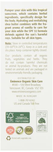 Natural SPF Protection for All Skin Types Skin Type: All skin types Key Ingredients: Shea Butter: calming and moisturizing; it is an excellent emollient for skin and naturally occurring sun screen Zinc Oxide: astringent and anti-inflammatory; aids in healing skin irritations and blocks UV rays Vanilla: calming, soothing; improves circulation Ethylhexyl Methoxycinnamate (also known as Octyl Methoxycinnamate): clear liquid compound that absorbs UVB lightFeature