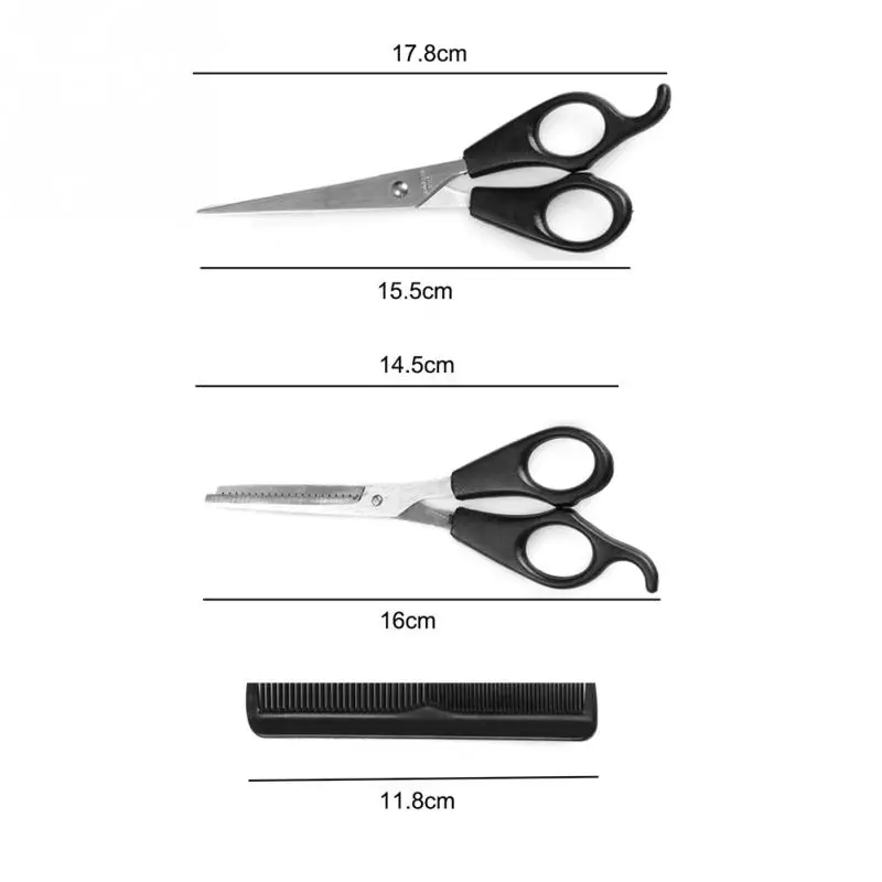 Features:u0026nbsp;100%u0026nbsp;brandu0026nbsp;newu0026nbsp;andu0026nbsp;highu0026nbsp;quality.Suitableu0026nbsp;foru0026nbsp;professionalu0026nbsp;andu0026nbsp;homeu0026nbsp;selfu0026nbsp;hairu0026nbsp;cutting.Sharpu0026nbsp;bladeu0026nbsp;,fastu0026nbsp;cutting,u0026nbsp;foru0026nbsp;easyu0026nbsp;operating.Comfortableu0026nbsp;andu0026nbsp;stylishu0026nbsp;designu0026nbsp;withu0026nbsp;curvedu0026nbsp;fingeru0026nbsp;rest.u0026nbsp;Itemu0026nbsp;type:u0026nbsp;haircutu0026nbsp;setMaterial:u0026nbsp;stainlessu0026nbsp;steelu0026nbsp;+u0026nbsp;PPColor:u0026nbsp;asu0026nbsp;pictureu0026nbsp;showsRegularu0026nbsp;hairu0026nbsp;scissorsu0026nbsp;size:u0026nbsp;17cm/6.69”Thinningu0026nbsp;scissorsu0026nbsp;size:u0026nbsp;16cm/6.30”Blacku0026nbsp;combu0026nbsp;size:u0026nbsp;13cm/5.12”u0026nbsp;Packageu0026nbsp;includes:u0026nbsp;1u0026nbsp;xu0026nbsp;regularu0026nbsp;hairu0026nbsp;scissors,u0026nbsp;1u0026nbsp;xu0026nbsp;thinningu0026nbsp;scissors,u0026nbsp;1u0026nbsp;xu0026nbsp;comb