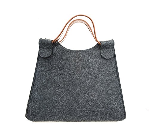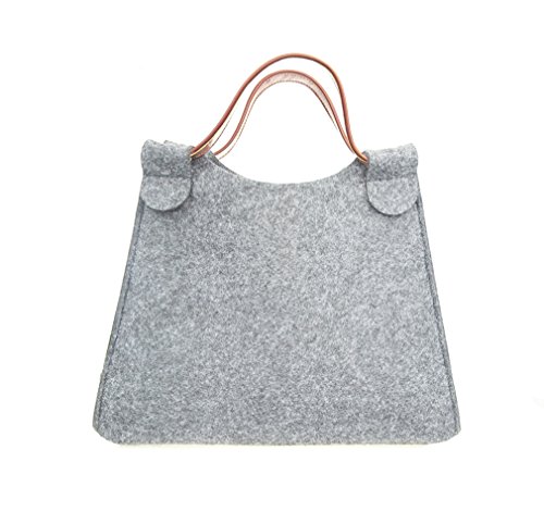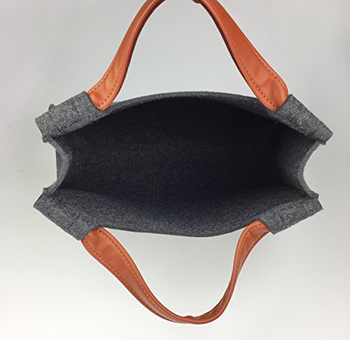Hoxis Simplicity Wool Felt Causal Small Tote Faux Leather Decor Womens Picnic Handbag