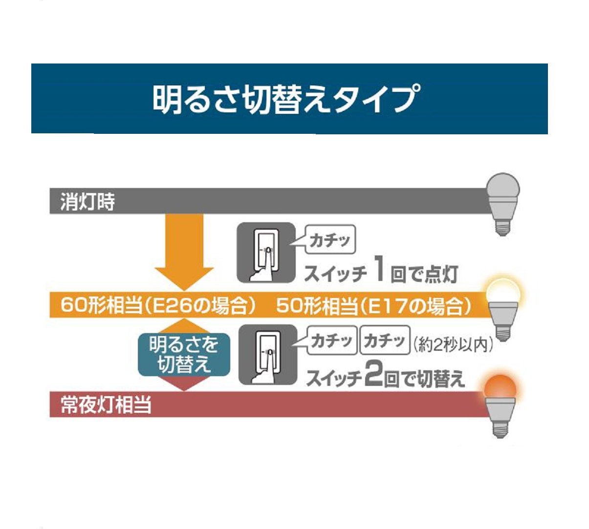 ◆ One LED bulb can be switched to "brightness" or "light color" according to the scene Brightness switching type LED arrangement is single (1 kind), switching input current with circuit, switching between 2 different types