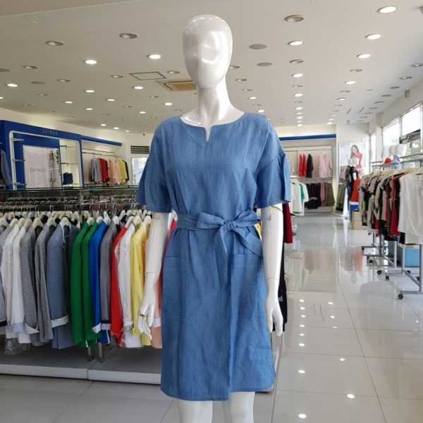 텐셀데님 튜닉형 원피스-JA6F8-WOP070-블루