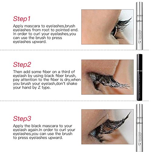 Then add some fiber on a third of eyelashe by using black fiber brush, pay attention to the fiber is dry, when you brush your eyelashe , don't shake your hand by z type.