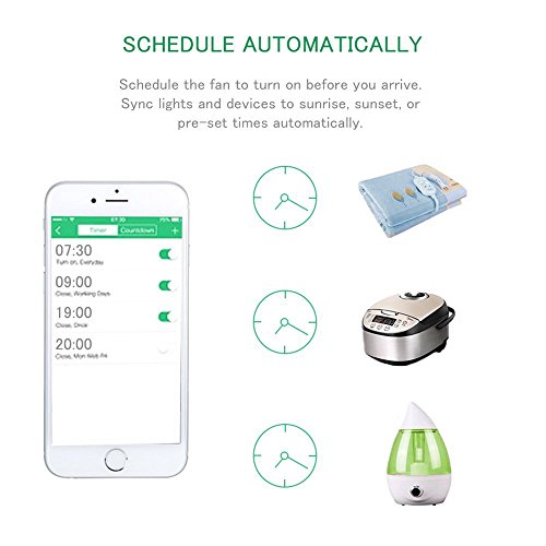 - Scheduling your outlets,Turn on/off your devices based on specific time you set,Eliminate wasteful use of your electricity, and help you save on bills