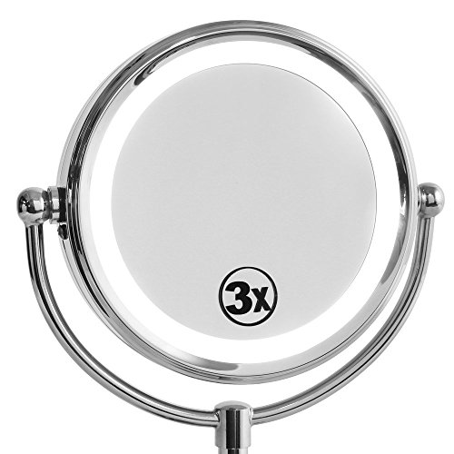 FLYMEI LED Lighted Makeup Mirror, Double-Sided Vanity Mirrors with 3x Magnification, Polished Chrome Finish (6-inch)