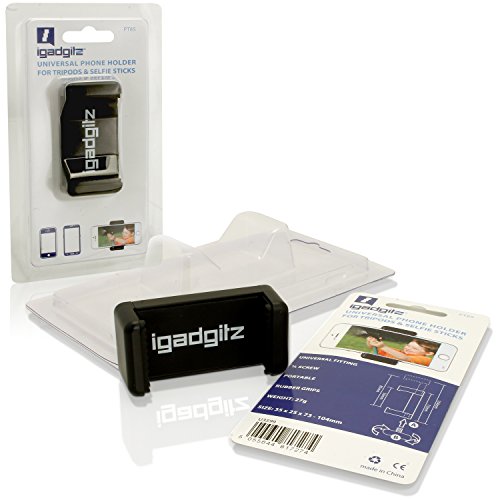 Including iGadgitz smartphone mount for tripods and selfie sticks with a ¼ inch-20 screw thread. The bracket is retractable and can fit mobile phones with 56-85mm wide screens.