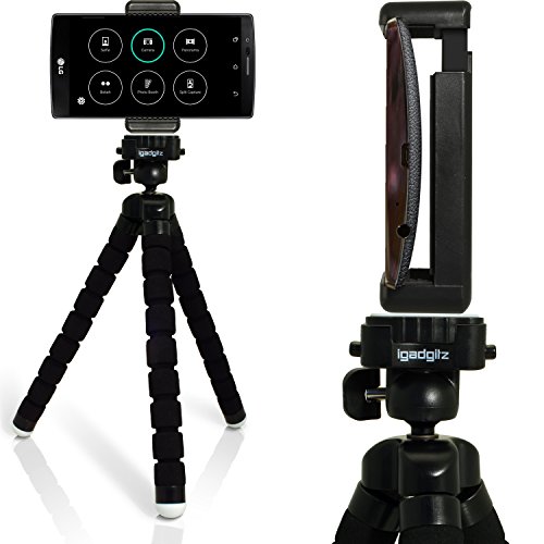 iGadgitz Black Lightweight Large Universal Flexible Foam Mini Tripod with Phone Bracket Mount & Release Plate for LG G3, G4, G5, Nexus 5X, V10, G4c, G4 Beat, G Flex, Optimum G Pro