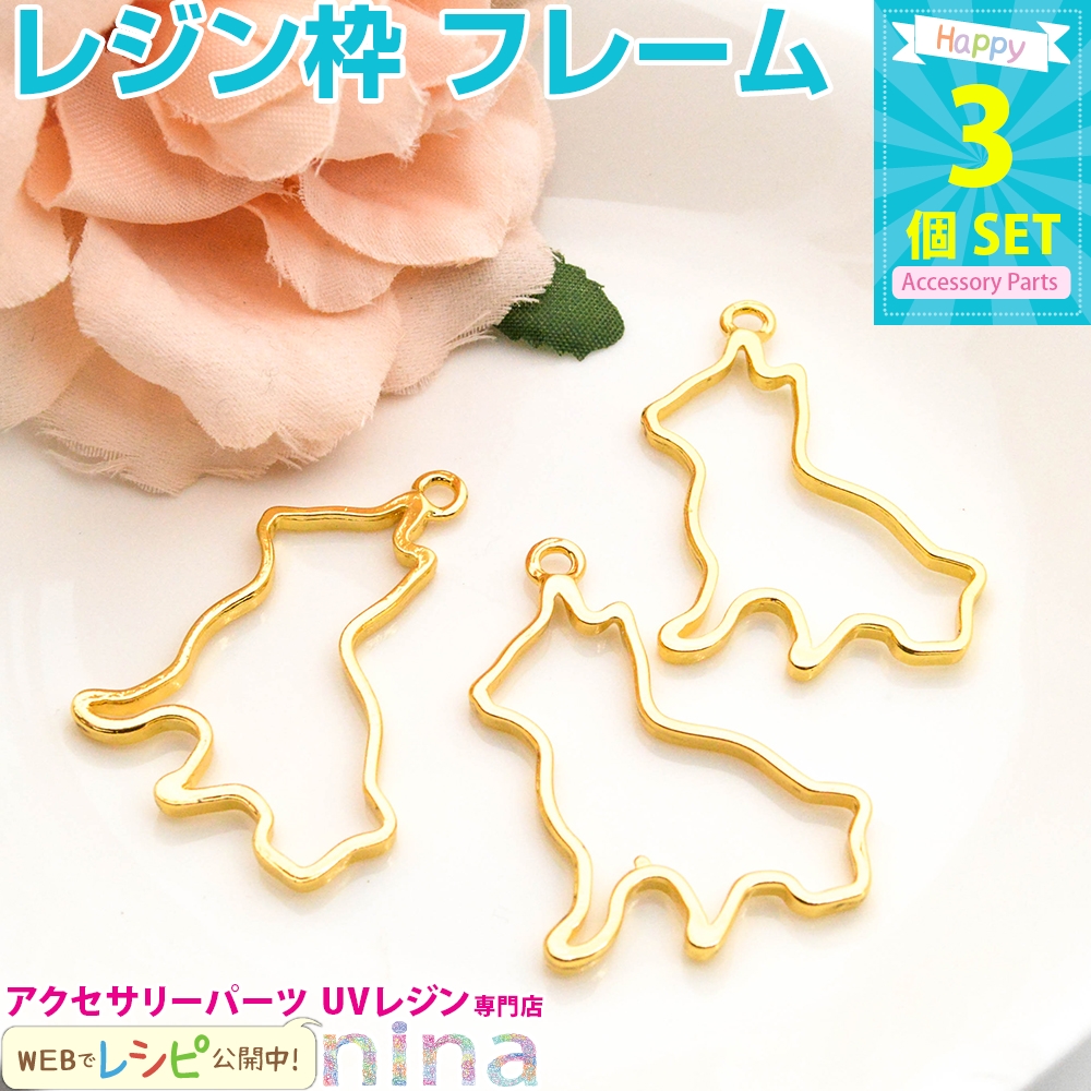 ■商品名:レジン枠 犬 ドッグ ゴールド 3個セット 3