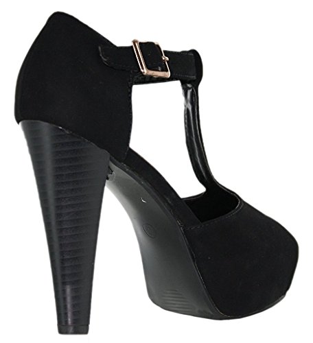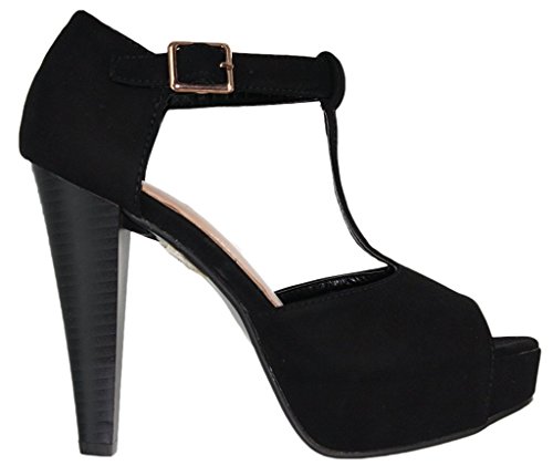 Top Moda Table-1 Women's peep toe platform chunky heel closed back buckle T-strap nubuck pumps ...