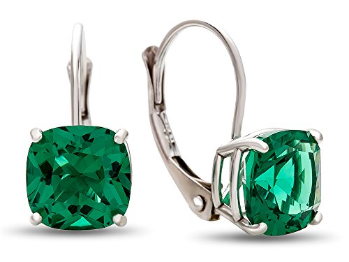 The attractive 7x7mm Cushion Simulated Emerald Lever-back Earrings, crafted in 10 kt White Gold . Warranty: - This item is covered by our exclusive Silver Shield Lifetime Warranty. This exclusive lifetime coverage is offered ONLY by Finejewelers so please shop with confidence, our quality is guaranteed for life!Feature