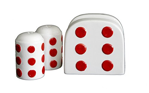 Tuscany 3D Red Dots, Hand Painted Ceramic Napkin Holder, Salt & Pepper Set, 82228 by ACK