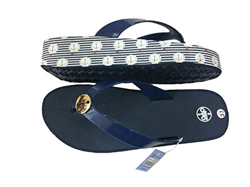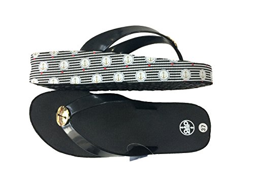 Product DescriptionWomen's Comfortable Mid Heels Slip-on Navy or Black Sailor Pattern Slippers Sandals0