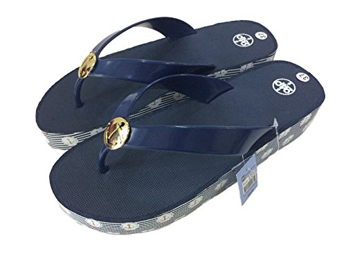 24P Women’s Slippers Sandals Comfortable Everyday Flip-Flop Mid Heels Slip-on, Navy or Black