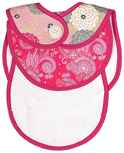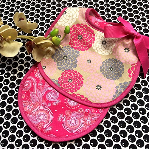 -. Feature : Modern P.R.Int bib and burp backed with terry cloth / Trimmed with hot pink binding and tied with a ribbon / For girls only / Measures 9 inches across by 11 inches from top to bottom / Machine Washable/Tumble Dry