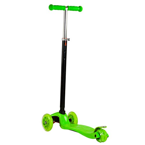 -. Binding : Misc. -. Brand : Generic -. Feature : ADVANTAGES: Smooth and quietest ride thanks to high quality wheels and a flexible fiberglass reinforced deck that absorb bumps in the sidewalk. The extra long rear brake covers the entire back tire for reliable stops. / ADJUSTABLE: Easily adjust the height of the T-bar to 3 height which is suitable for children from age 2 to 6 and lasts as your little one grows. / SAFETY: Rear-brake provide control & safety. We strongly recommend that children wear helmets and knee pads when riding. / USAGE: Easy to assemble. No tools required. This scooter support folding, easy to carry and install. / AGE GROUP: Perfect scooter for ages 3 - 7 years, up to 110 LB. -. IsAutographed : 0 -. IsMemorabilia : 0 -. Label : Generic -. Manufacturer : Generic -. MPN : CON2-OXE -. PartNumber : CON2-OXE -. ProductGroup : Sports -. ProductTypeName : SPORTING_GOODS -. Publisher : Generic -. Studio : Generic -. Title : 3 Wheel Kick Scooter Street Smooth Ride For Kids Adjustable T-Bar Wheel Height Up To 110 LB
