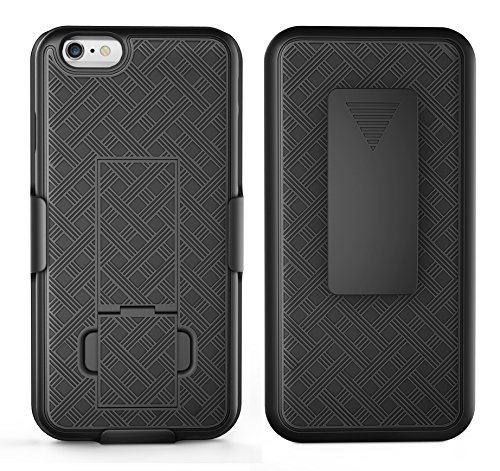 Slip your Apple iPhone 6s plus / iPhone 6 plus into this custom fit Slim Hard Shell kickstand case with a belt clip holster by Aceabove and experience the peace of mind of knowing your investment is well protected. With this slim hard shell case with textured finish is very protective yet very convenient to use. It is very light weight and provide excellent grip. The elevated edges prevent your screen from being shattered when drop. An innovative built-in stand provides ultimate flexibility and convenience allowing you to watch videos and movies with enviable comfort. The raised wrap-around edges make for a "lay-on-the-table" design that helps protect the glass screen from damage. Holster shell is very easy to install and remove, and definitely affordable. The belt clip can rotate 180 degrees to provide you with flexibility you would never imagine