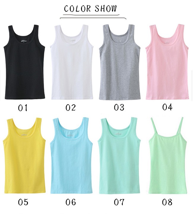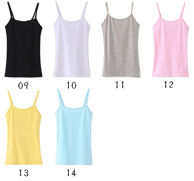 キャミソールは襟ぐりは前も後ろも大きめに開いており、タンクトップはブラ紐がしっかり隠れる肩幅になっています。
